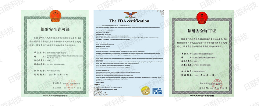 日联科技各类设备都严格申请了苏环辐射安全许可证、美国FDA安全认证、有些还具有豁免证书。