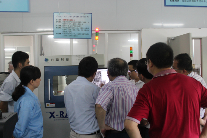 由来自于广东省教育厅和鉴定组的十多位专家组成的鉴定委员会,对日联科技与华南理工大学联合开发的微聚焦X射线检测设备进行了鉴定,通过现场考察、设备测试、听取报告、现场提问与讨论等多个环节,对日联科技研发的X-Ray检测设备的创新性、实用性、技术水平以及所取得的经济效应与社会效应授予高度肯定与一致认可。