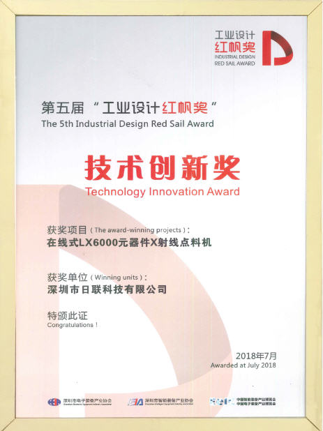 展会同期举办了2018第五届深圳电子装备产业工业设计“红帆奖”企业展示、EeIE2018创新成就之夜暨第五届工业设计“红帆奖”颁奖典礼,得到了政府、行业机构及广大企业的高度专注与好评。经过初审、现场评审和公众投票等环节,日联在众多企业中脱颖而出,喜获工业设计红帆奖“技术创新奖”。能够获得此奖项,是行业协会、专家学者、媒体对日联科技深厚的工业设计能力的充分肯定,公司将持续科技创新,致力于为工业界提供高端X射线智能检测装备及解决方案。