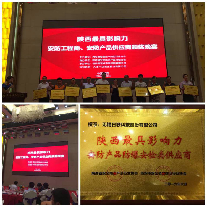 2016.06.30由西安市安全技术防范行业协会主办,陕西省安全防范产品行业协会协办,西安智慧城市物联网有限公司承办的“陕西**影响力安防工程商、安防产品供应商”评选活动在西安广城大酒店隆重举行。本次评选有138家企业参与申报,评审组专家通过创新性、技术性、美观性、实用性等多个维度来对产品进行评选和投票,经过三个多月严谨认真讨论和投票表决,共有36家安防工程商及23家安防产品商入围,日联科技凭借卓越的创新能力、产品功能的独特性获得“陕西**影响力安防产品防爆安检类供应商”荣誉称号。