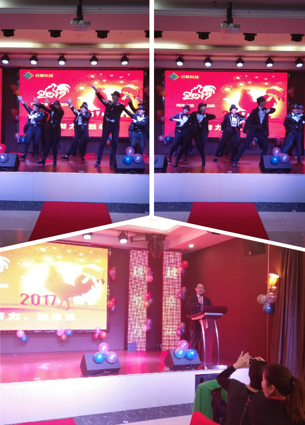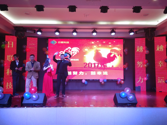 日联科技(深圳)公司于2017年1月13日在东海明珠大酒店召开2016年度表彰大会暨2017年春节联欢晚会,特邀参会的有日联携手合作伙伴、供应商、代理商以及深圳日联全体同仁。日联科技董事长刘骏和集团总经理倪文俊先生对前来参加会议暨晚会的同仁表示祝贺与感谢。